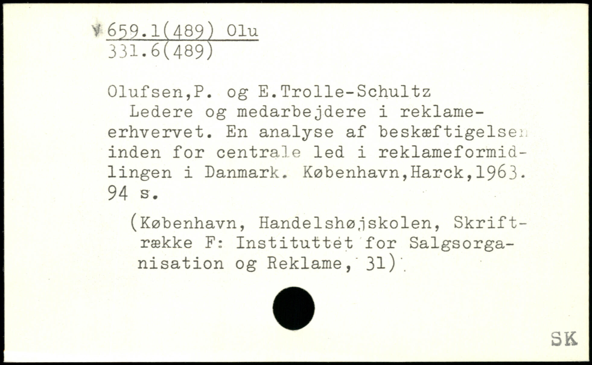 01ufsen,P. og E.Trolle-Schultz Ledere og medarbejdere i reklameerhvervet. En analyse af beskæftigelse): inden for centrale led i reklameformid-lingen i Danmark.