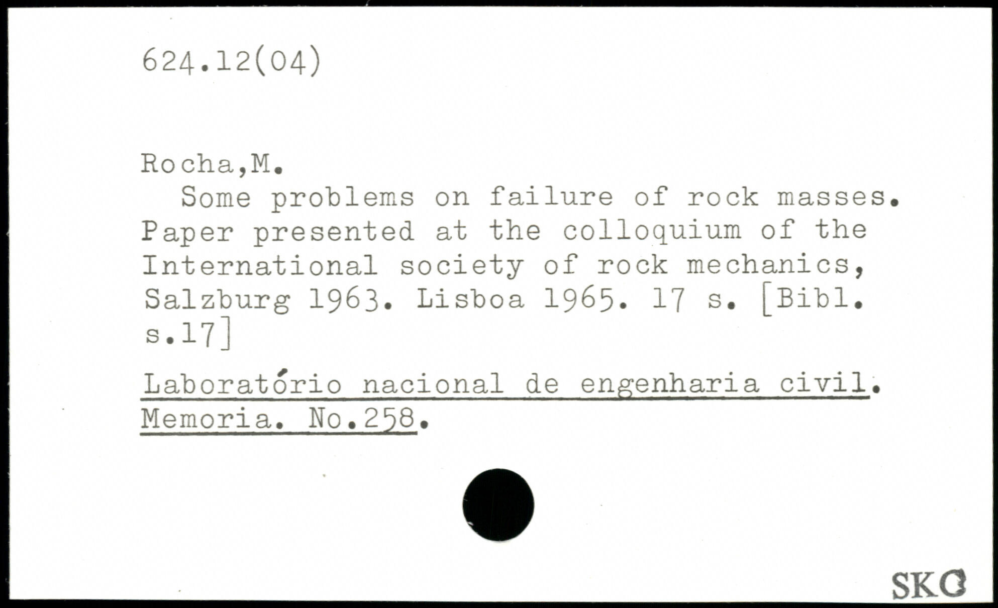 Some problems on failure of rock masses. Paper presented at the colloquium of the International society of rock mechanics, Salzburg 1963. Lisboa 1965.