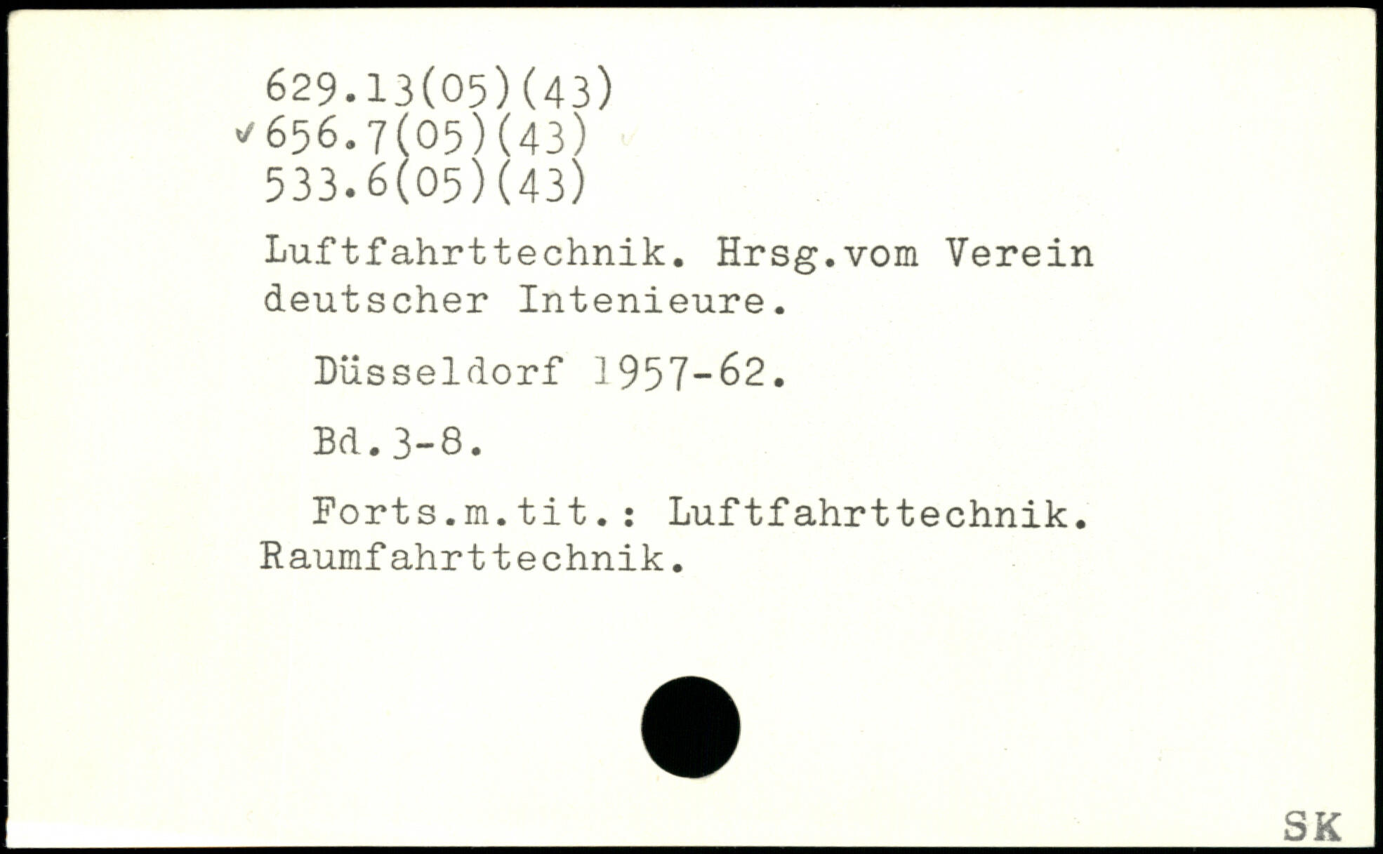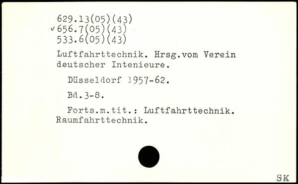 Luftfahrttechnik. Hrsg.vom Verein deutscher Intenieure. Düsseldorf 1957-62.