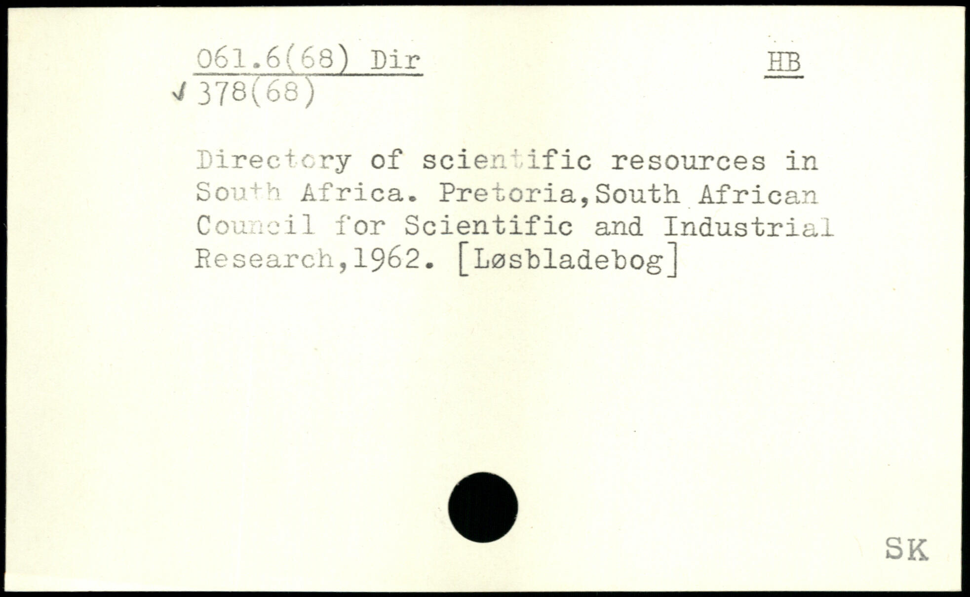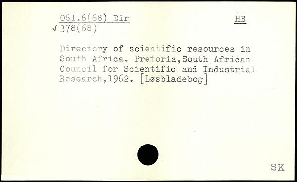 Directory of scientific resources in South Africa. Pretoria,South African Council for Scientific and Industrial Research,1962. [Loshladehog]