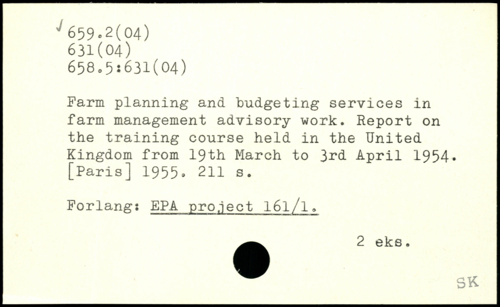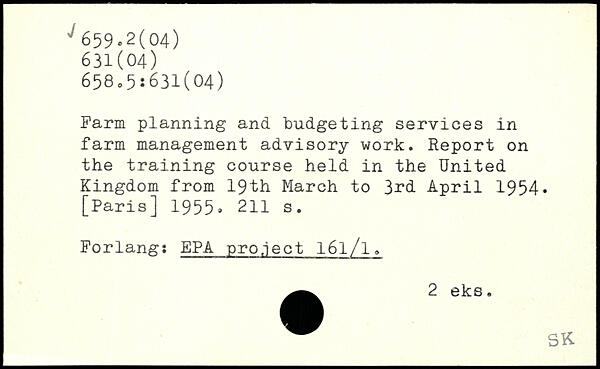 Farm planning and budgeting services in farm management advisory work. Report on the training course held in the United Kingdom from 19th March to April 1954
