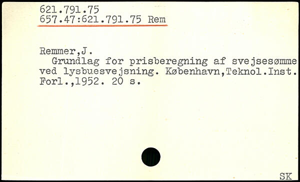 Grundlag for pris'beregning af svejsesømme ved lysbuesvejsning. København,Teknol.Inst. Forl.,1952.