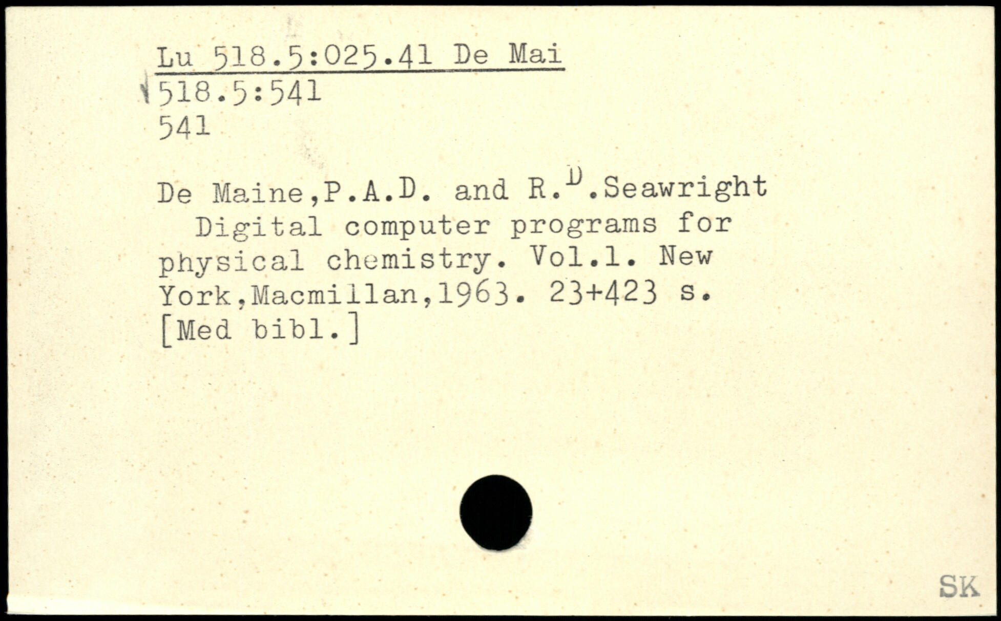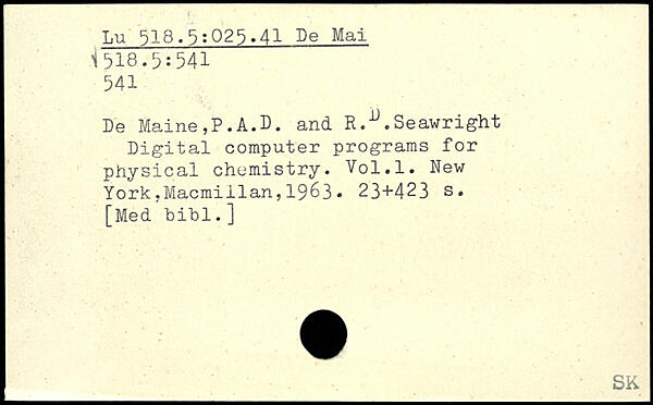 Le Maine,P.A.L. and R.11. Seawright Digital computer programs for physical chemistry.
