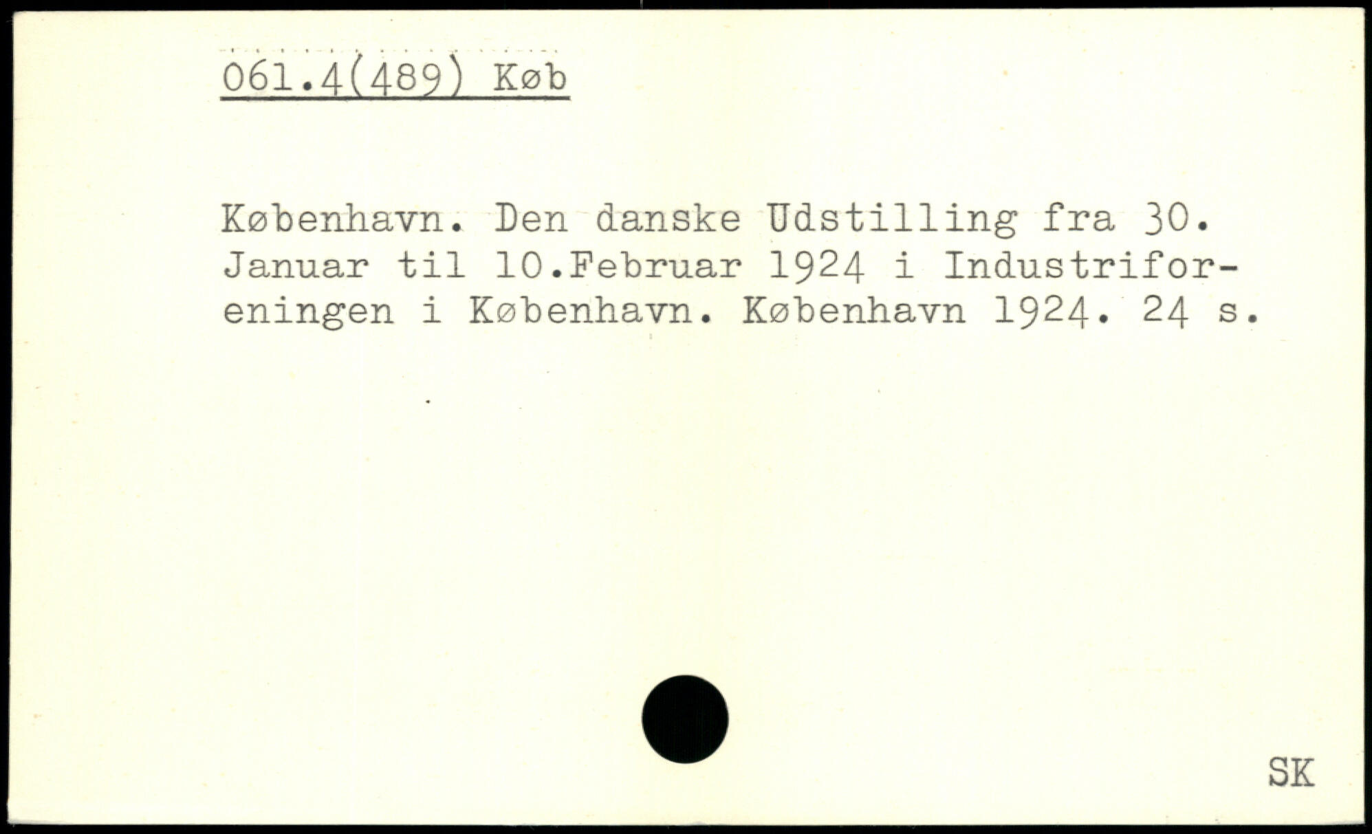 København. Den danske Udst1111ng fra 30. Januar til 10.Februar 1924 i Industriforeningen i København.