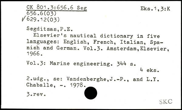Elsevier's nautical dictionary in five languages: English, French, Italian, Spanish and German.