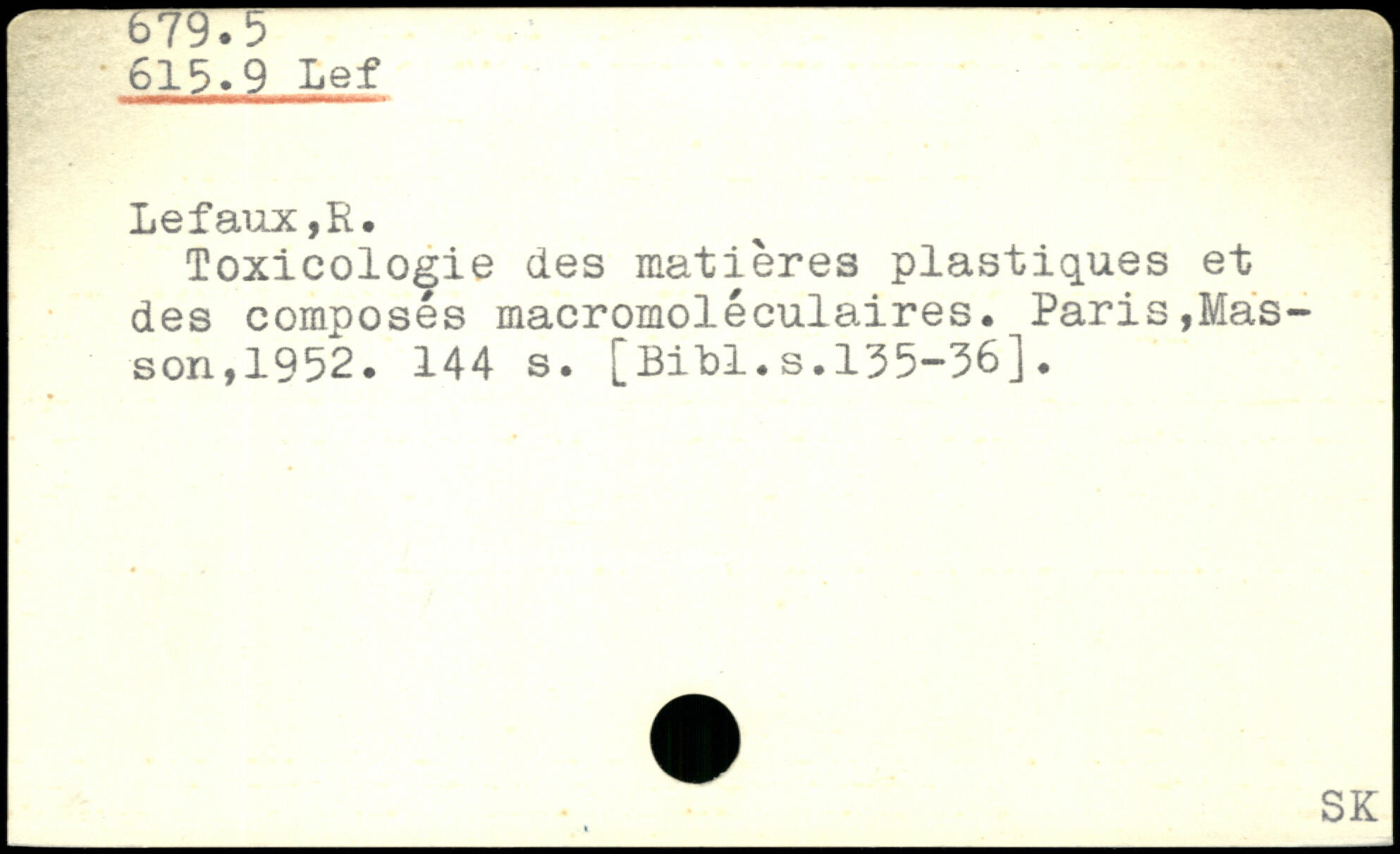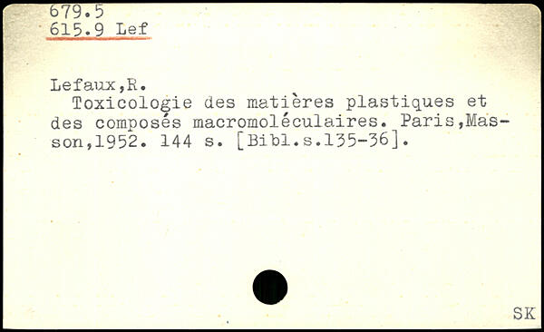 Toxicologie des matières plastiques et des composés macromoléculaires.