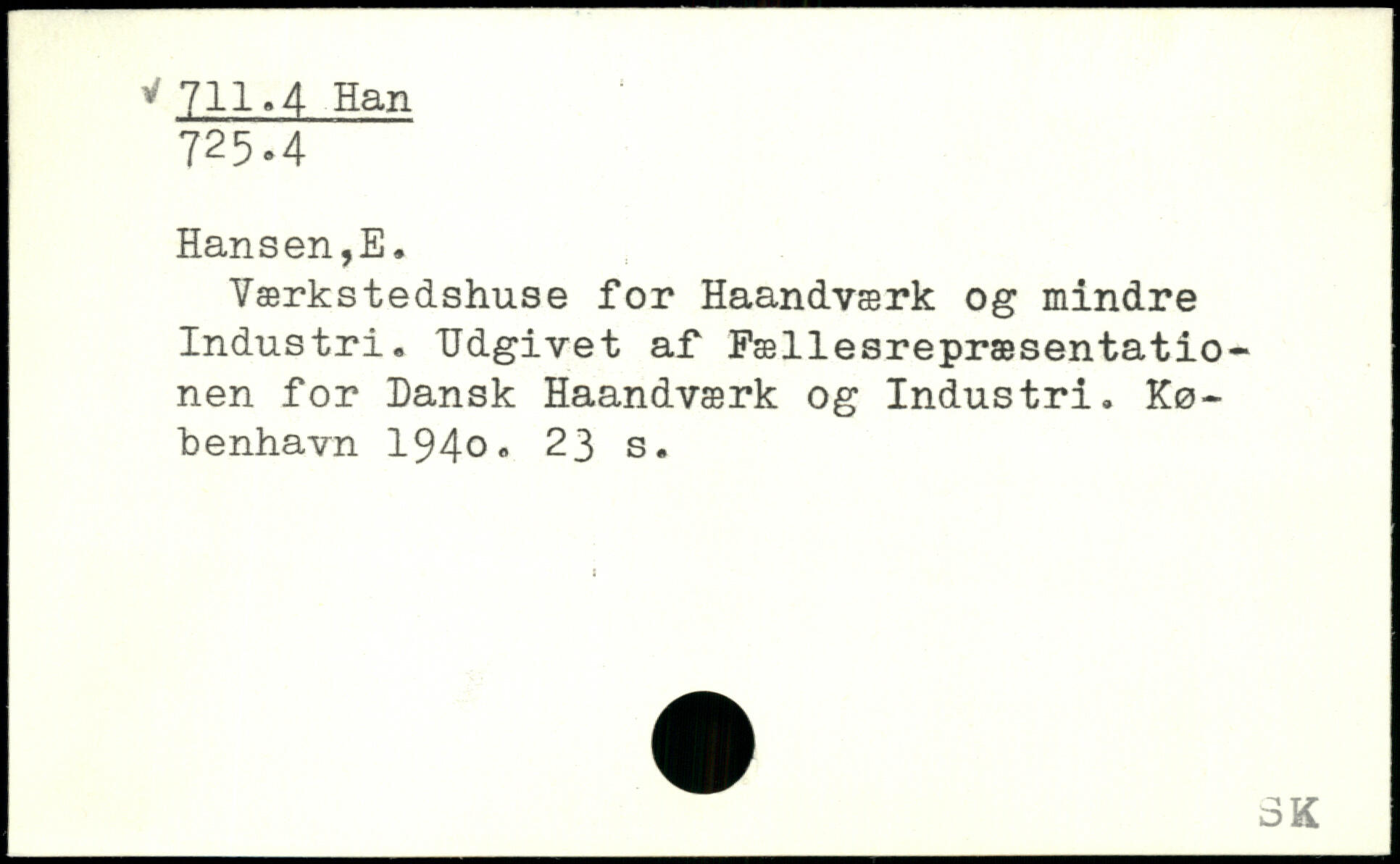 Værkstedshuse for Haandværk og mindre Industri. TJdgivet af Fællesrepræsentationen for Dansk Haandværk og Industri. København 194o