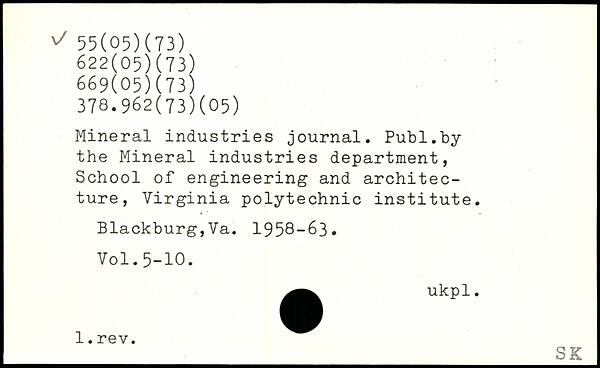 UDK: 55(05)(73), 622(05)(73), 669(05)(73), 378.962(73)(05)