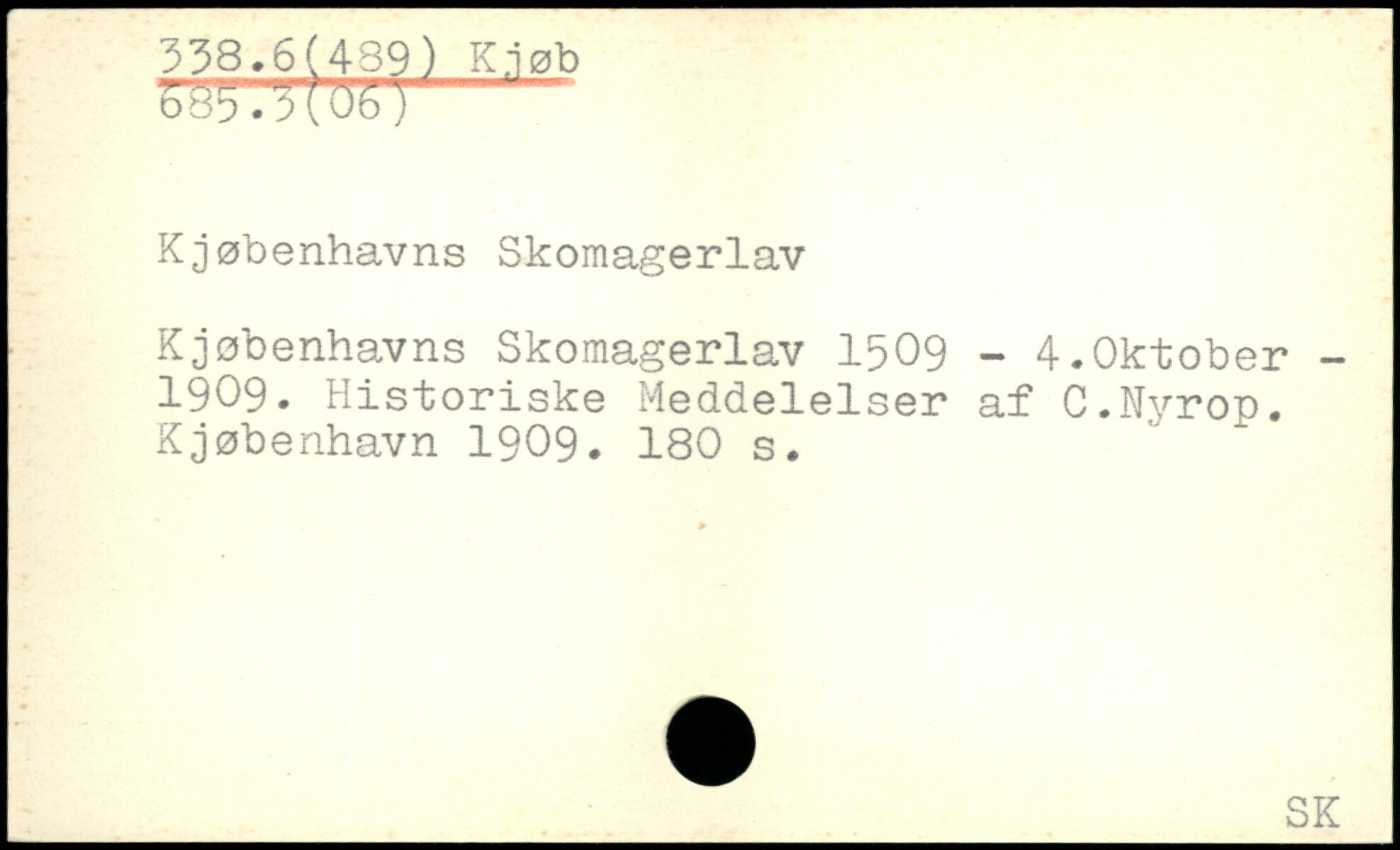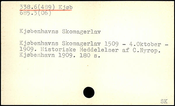 bm.?Wr— Kjøbenhavns Skomagerlav Kjøbenhavns Skomagerlav 1509 - 4.Oktober -1909. Historiske Meddelelser af C.Nyrop. Kjøbenhavn 1909.