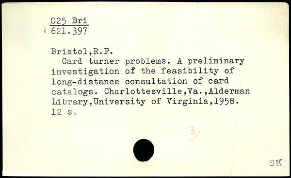 Card turner problems. A preliminary investigation of the feasibility of long-distance consultation of card catalogs.