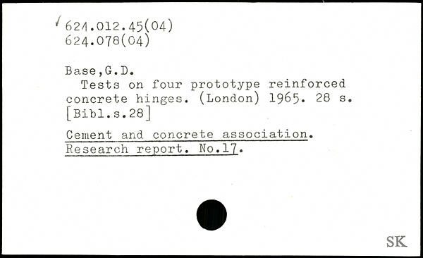 Tests on four prototype reinforced concrete hinges. (London) 1965.