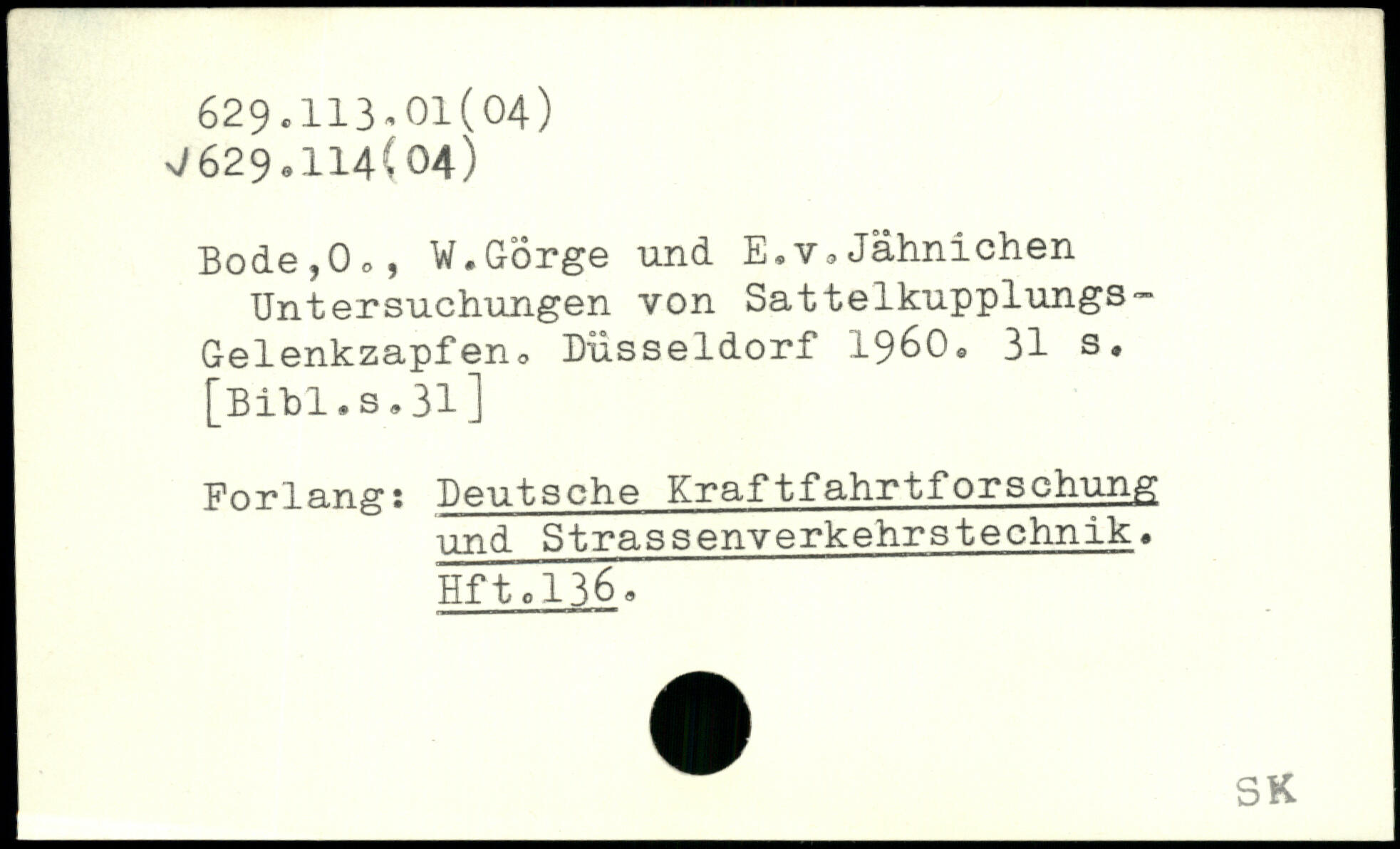 Bode,0o, W.Gorge und E.v.Jähnichen Untersuchungen von Sattelkupplungs-Gelenkzapfen, Düsseldorf 1960.