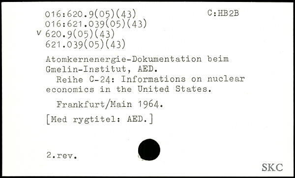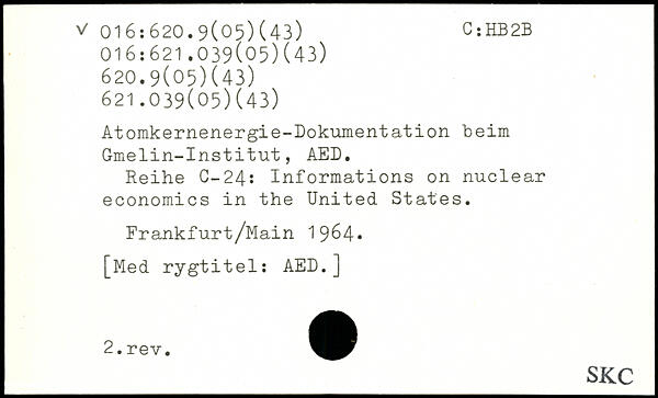 Atomkernenergie-Dokumentation beim Gmelin-Institut, AED. Reihe C-24: Informations on nuclear economics in the United States. Frankfurt/Main 19&4,