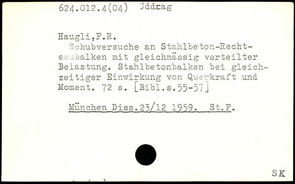 Schubversuche an Stahlbeton-Recht-eckbalken mit gleichmässig verteilter Belastung. Stahlbetonbalken bei gleichzeitiger Einwirkung von Querkraft und Moment.