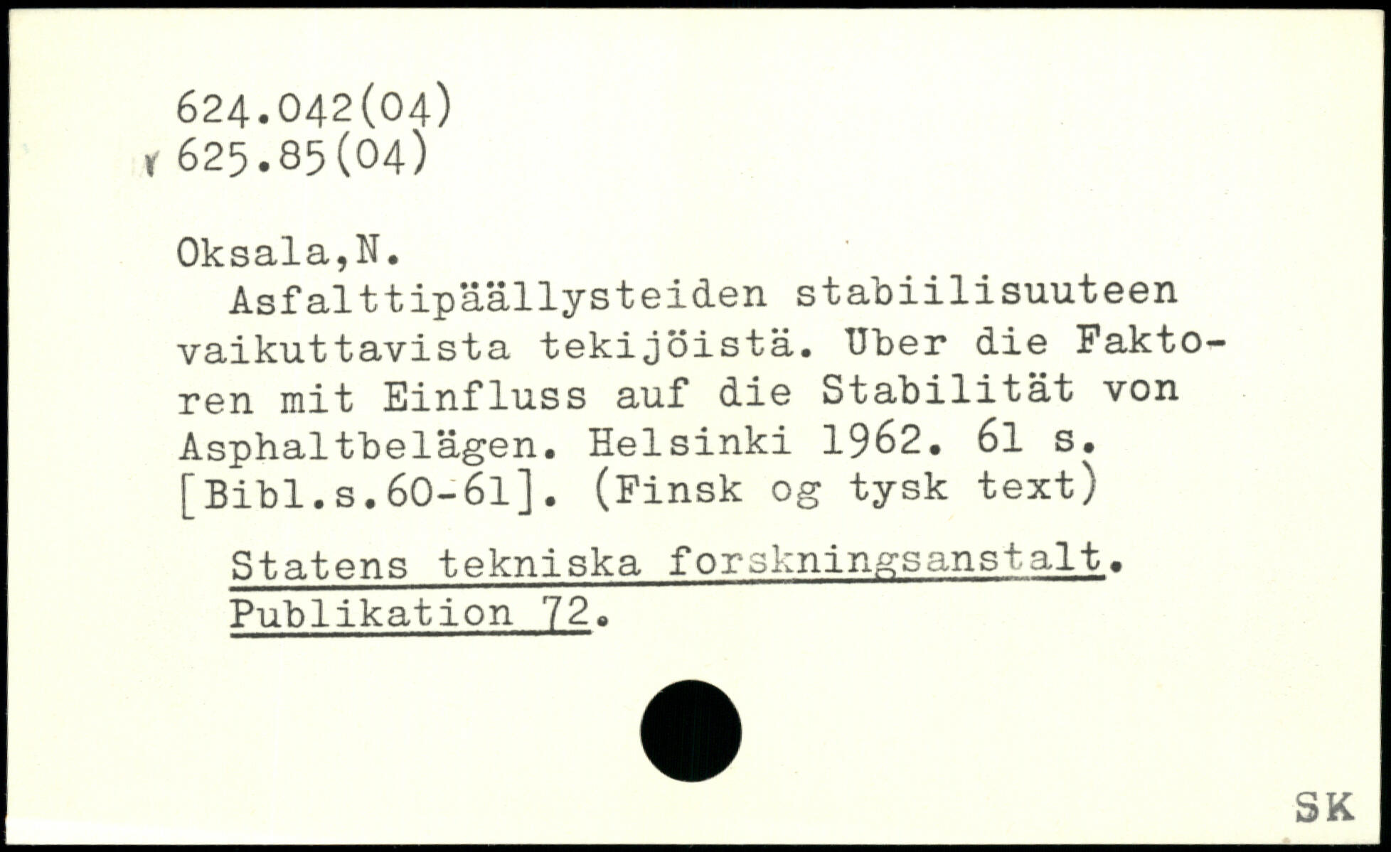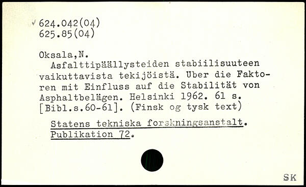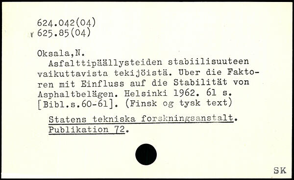 Asfalttipäällysteiden stab1111suuteen vaikuttavista tekijöistä. Uber die Faktoren mit Einfluss auf die Stabilität von Asphaltbelägen.