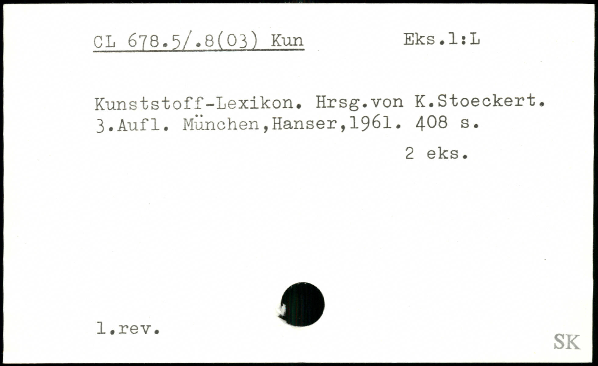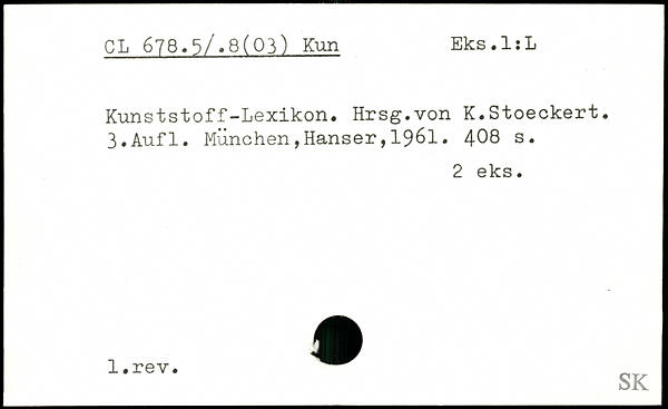Kunststoff-Lexikon. Hrsg.von K.Stoeckert.