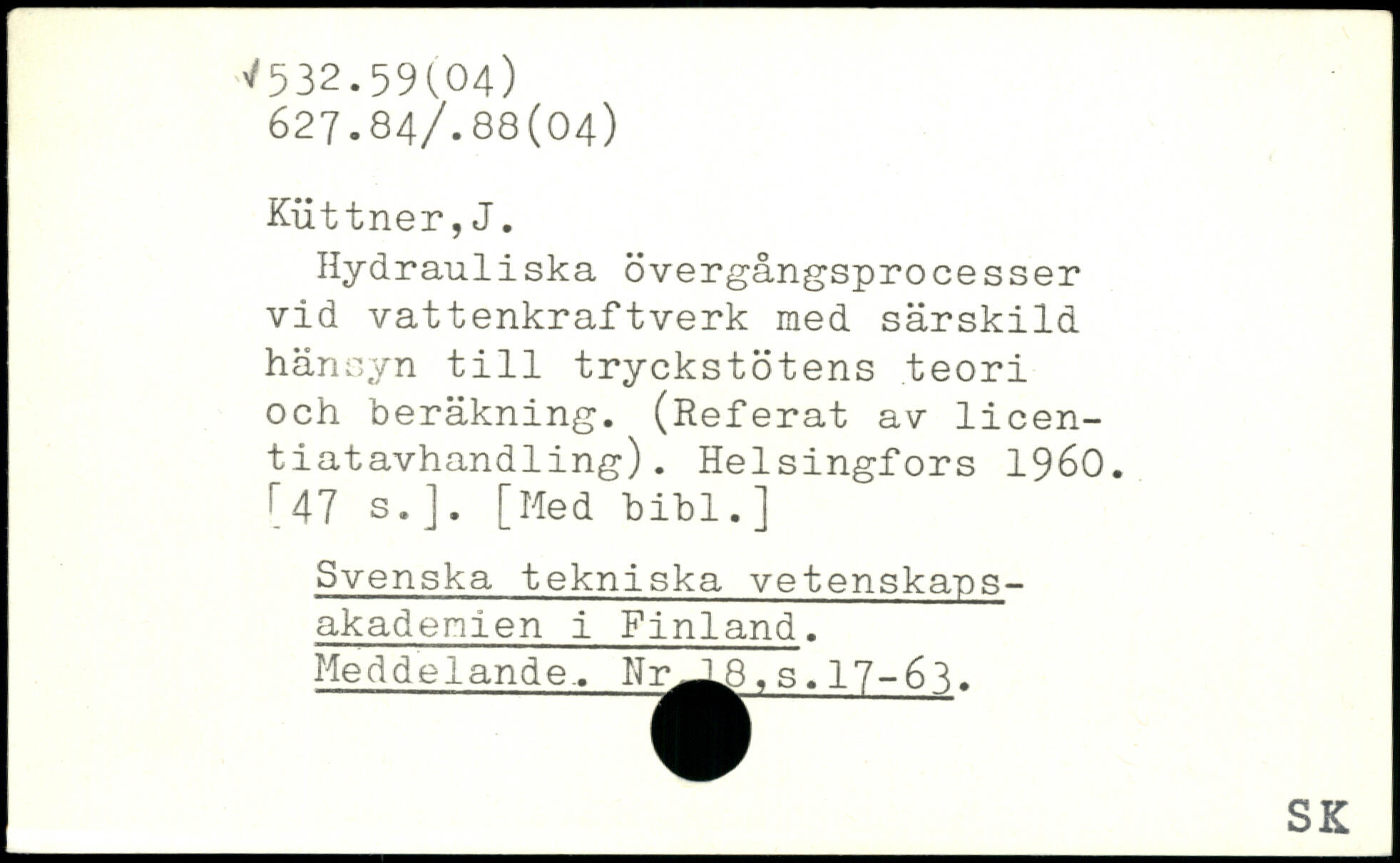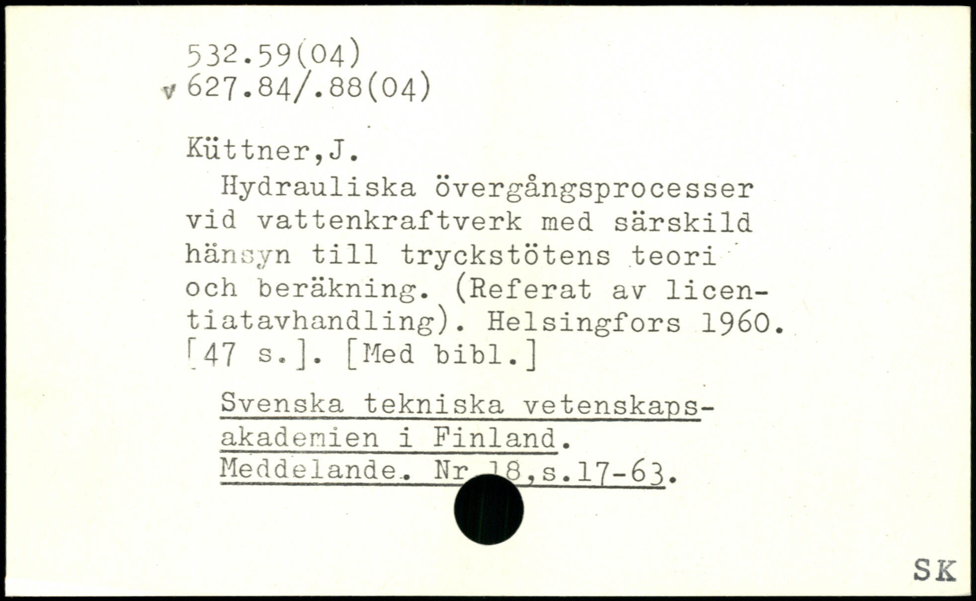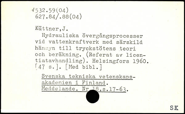 Hydrauliska övergångsprocesser vid vattenkraftverk med särskild hänsyn till tryckstötens teori och beräkning. (Referat av licentiatavhandling).