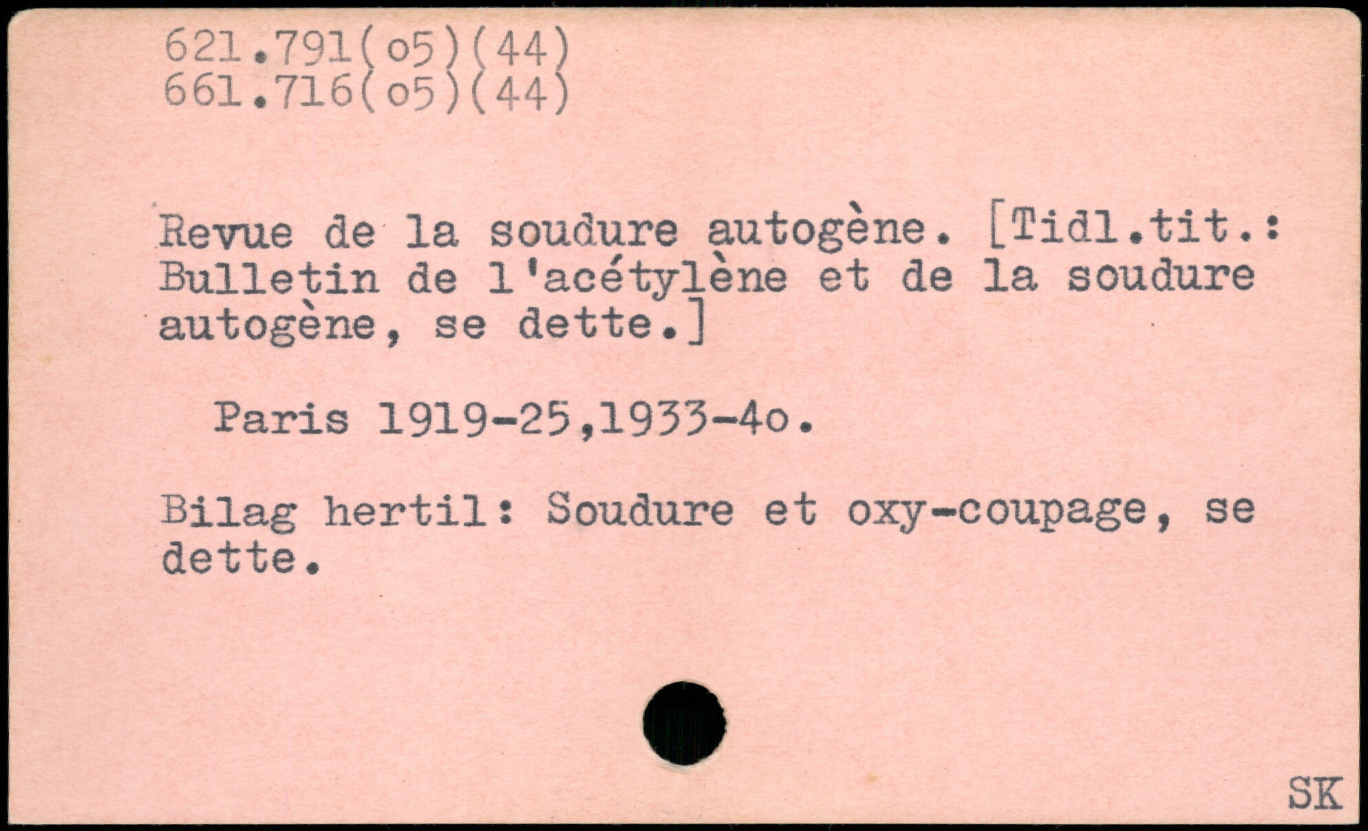 Revue de la soudure autogène. [Tidl.tit.: Bulletin de l.acétylène et de la soudure autogène, se dette.]