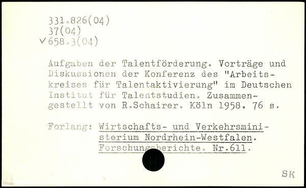 Aufgaben der Talentförderung. Vorträge und Diskussionen der Konferenz des "Arbeitskreises für Talentaktivierung" im Deutschen Institut für Talentstudien. Zusammengestellt von K,Schairer.