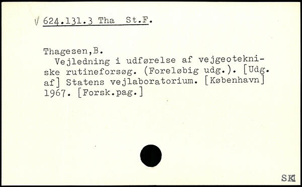 Vejledning i udførelse af vejgeotekni-ske rutineforsøg. (Foreløbig udg.). [Udg. af] Statens vejlaboratorium.