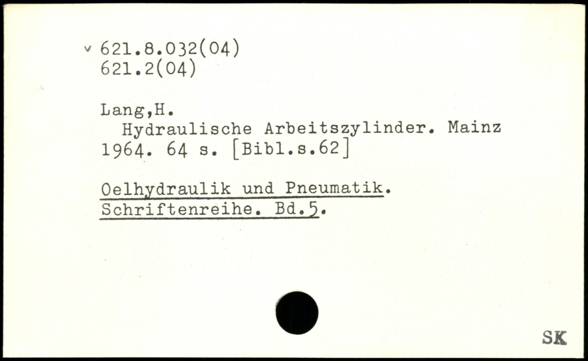 Hydraulische Arbeitszylinder. Mainz 1964.
