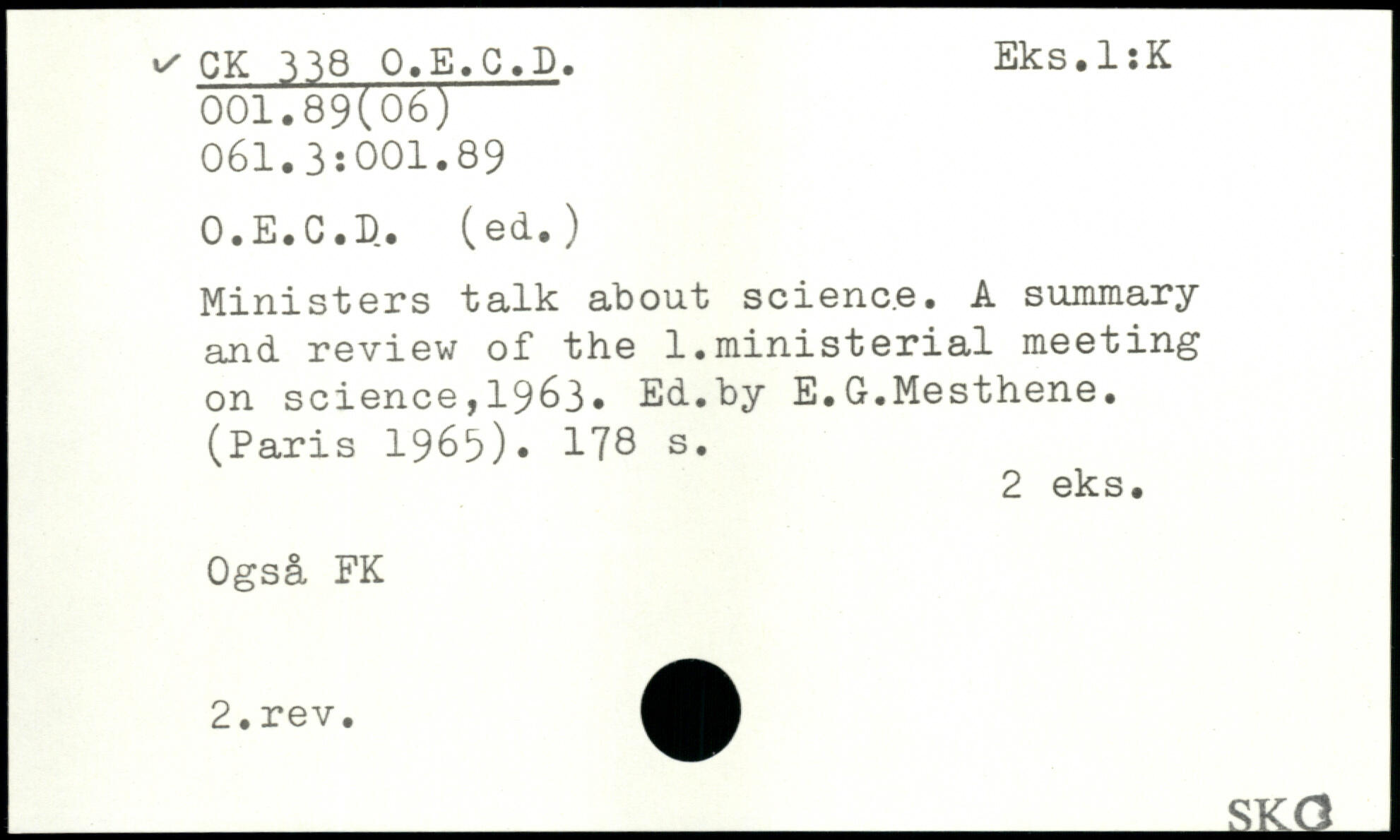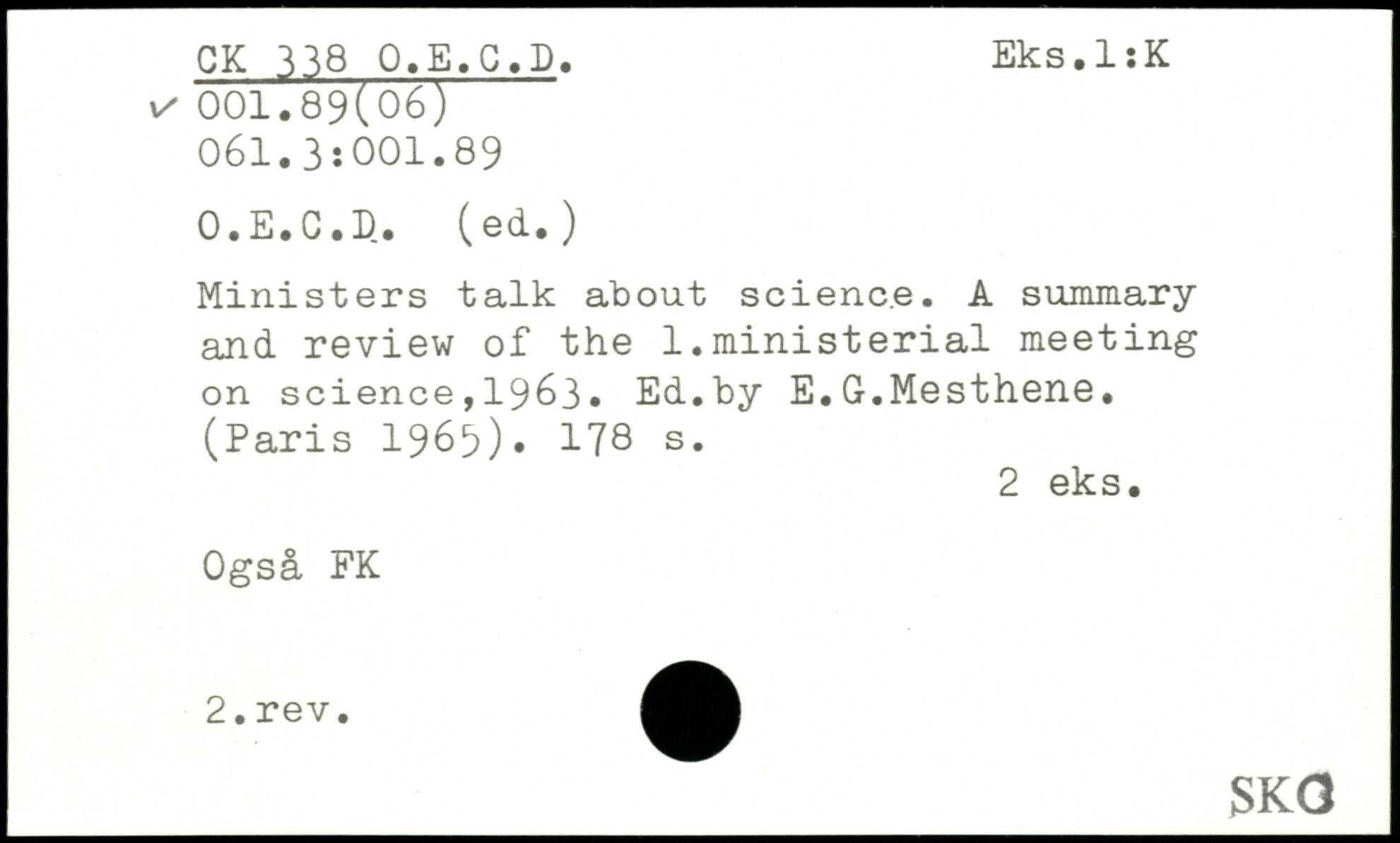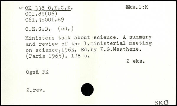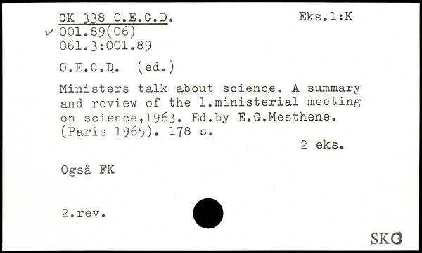 Ministers talk about scienc.e. A summary and review of the 1.ministerial meeting on science,1963. Ed.by E.G.Mesthene. (