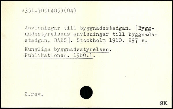 Anvisningar till byggnadsstadgan. [Bygg-. nadsstyreIsens anvisningar till byggnadsstadgan, BABS].