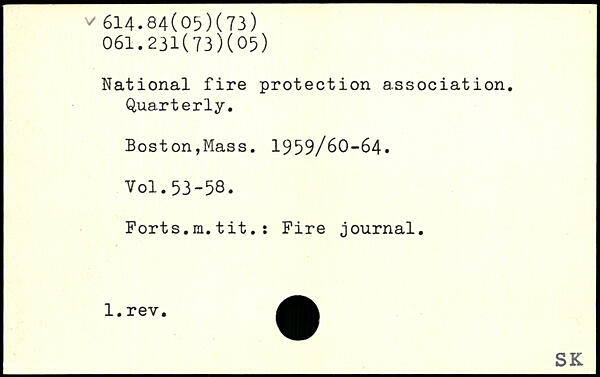 National fire protection association. Quarterly. Boston,Mass. 1959/60-64.