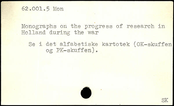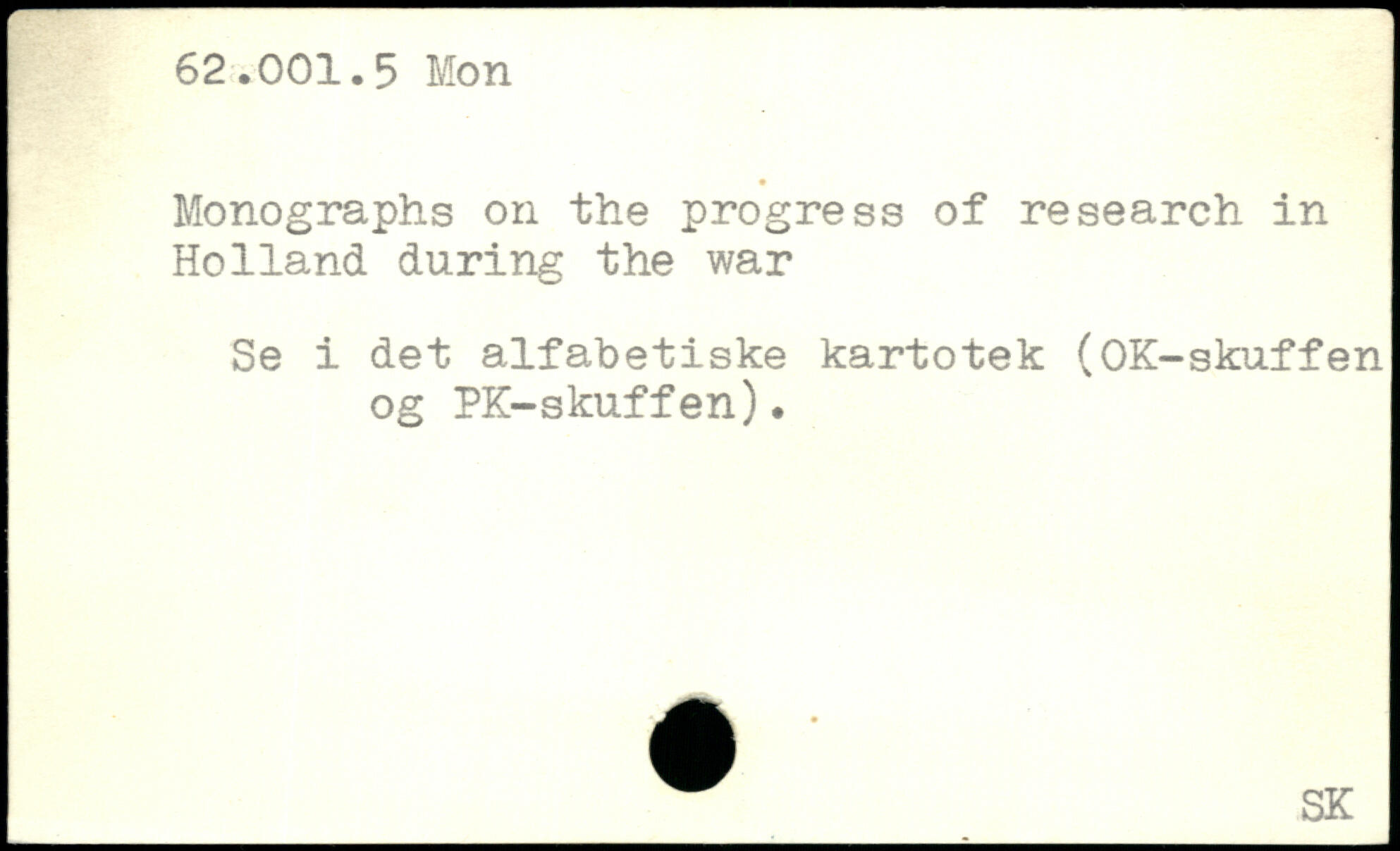 Monographs on the progress of research in Holland during the war Se i det alfabetiske kartotek (OK-skuffen og PK-skuffen).