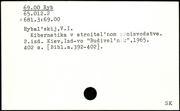 Rybal’skij,V.I. Kibernetika v stroitel'nom proizvodstve. 2.izd. Kiev,Izd-vo "Budivel’nik",19&5.