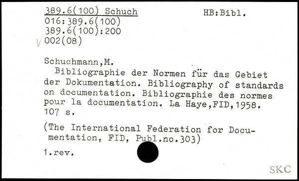 UDK: 389.6(100) Schuch, 016:389.6(100), 200, 002(08)