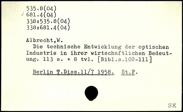 Die technische Entwicklung der optischen Industrie in ihrer wirtschaftlichen Bedeutung. II