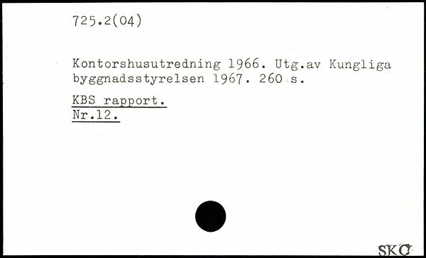 Kontorshusutredning 1966. Utg.av Kungliga byggnadsstyrelsen 1967.