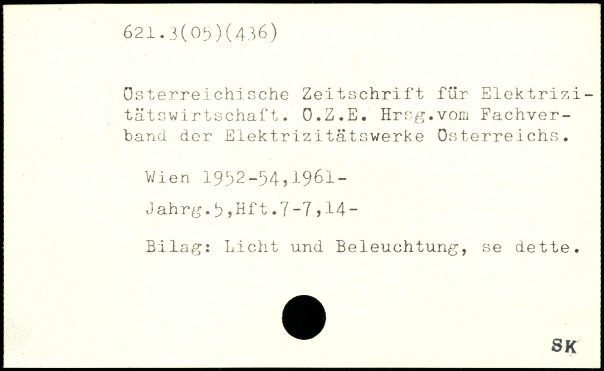 Österreichische Zeitschrift für Elektrizi-tätswirtschaft. O.Z.E. Hrsg.vom Fachverband der Elektrizitätswerke Österreichs.