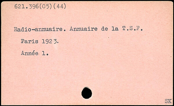 Radio-annuaire. Annuaire de la T.S.R, Paris 192 3-Année 1.