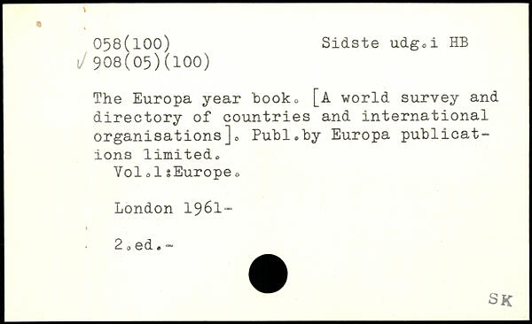 The Europa year book, [A world survey and directory of countries and international organisations], Publ,by Europa publications limited, Yol, 1îEurope