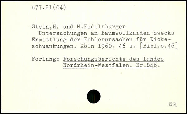 Stein,Ht und M,Eidelsburger Untersuchungen an Baumwollkarden zwecks Ermittlung der Fehlerursachen für Dicke-Schwankungen