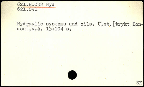 Hydraulic systems and oils. U.st.[trykt London], u.&.