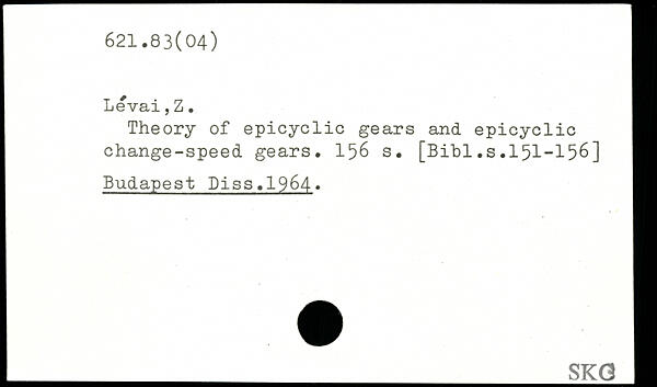 Levai,Z. H Theory of epicyclic gears and epicyclic H change-speed gears.