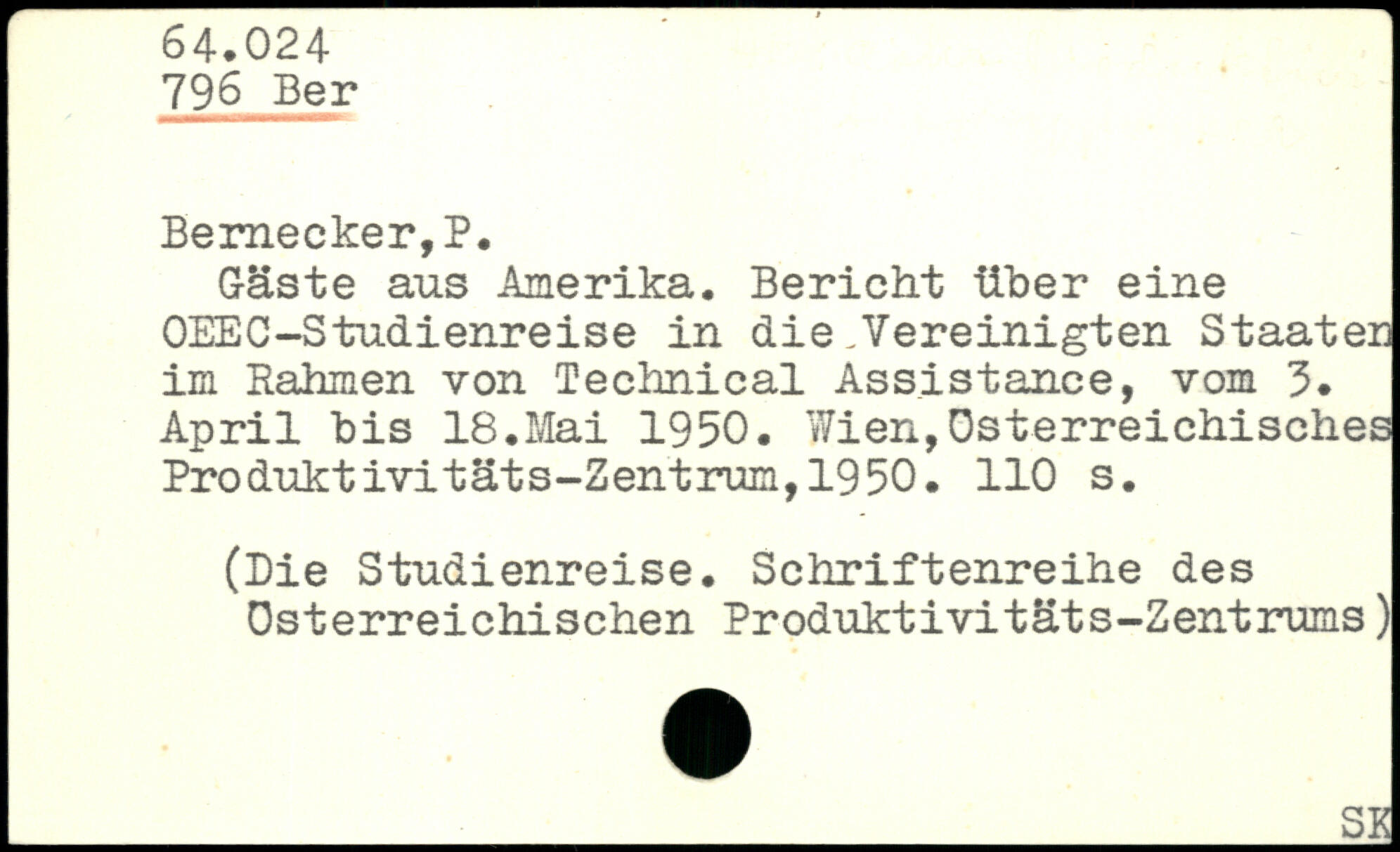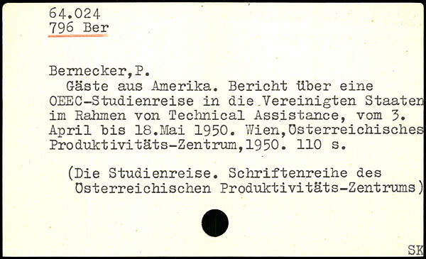 Gäste aus Amerika. Bericht über eine OEEC-Studienreise in die.Vereinigten Staaten im Rahmen von Technical Assistance, vom 3. April bis 18.Mai 1950. Wien,Österreichisches Produktivitäts-Zentrum,1950.