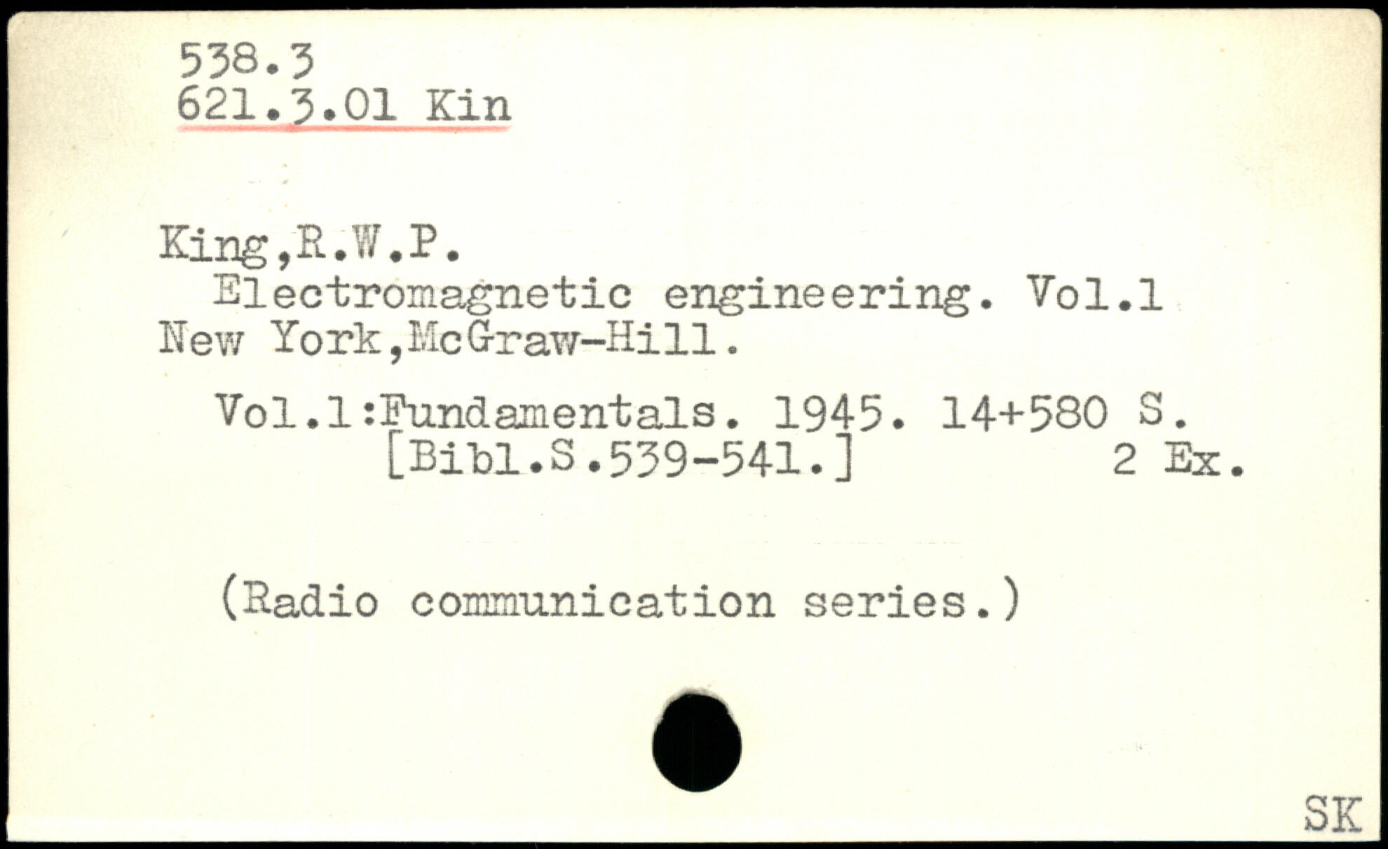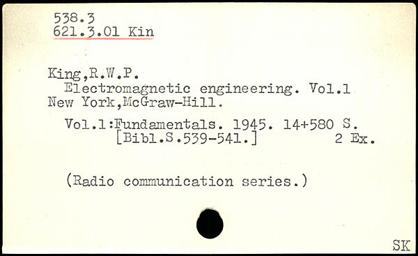 Electromagnetic engineering. Vo1.1 Hew York,MeG-raw-Hill. Vol.l:Eundamentals. 1945.