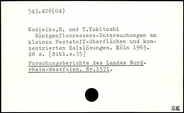 RÖntgenfluoreszenz-Untersuchungen an kleinen Feststoff-Oberflächen und konzentrierten Salzlösungen. Köln 19&5.