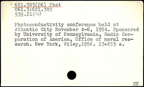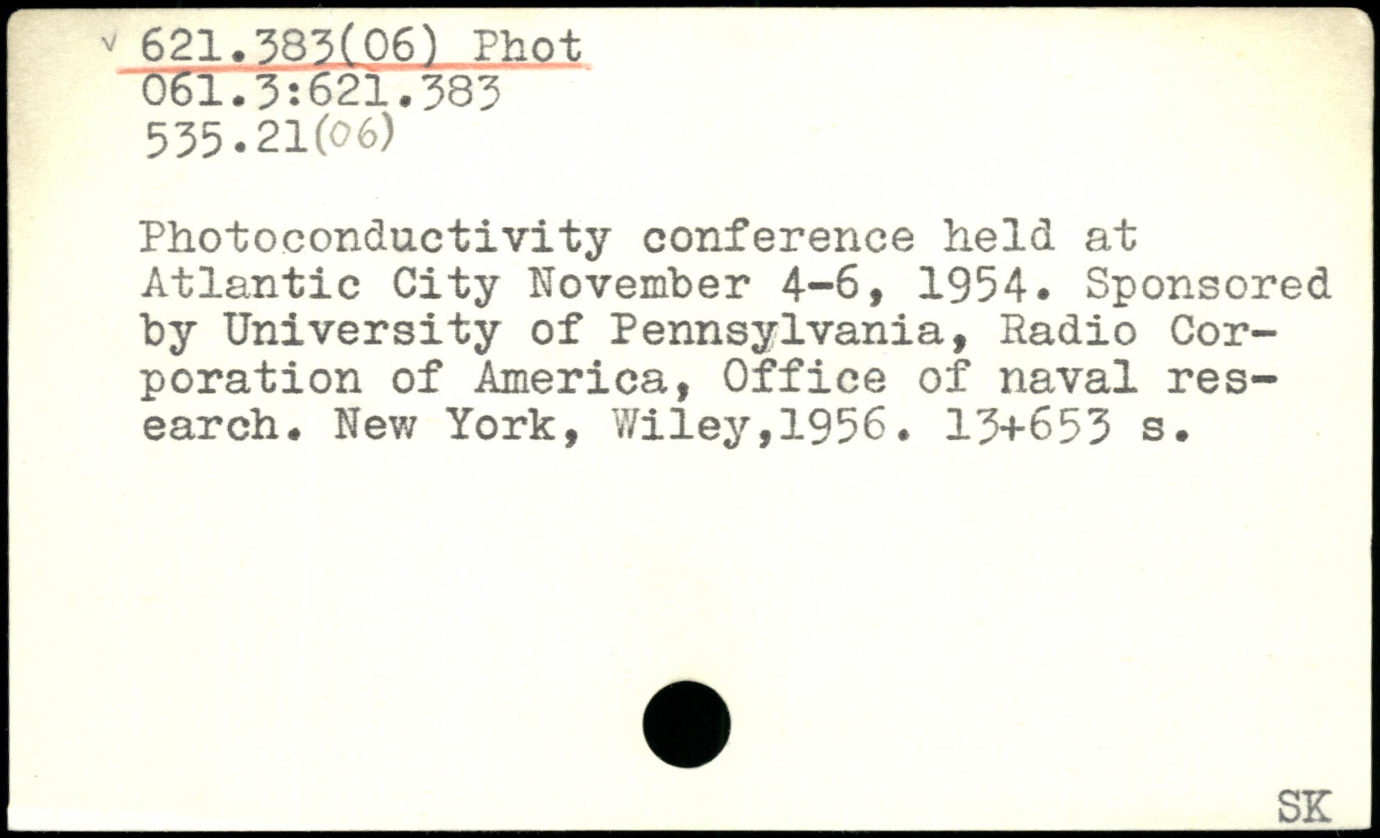 Photoconductivity conference held at Atlantic City November 4-6, 1954. Sponsored by University of Pennsylvania, Radio Corporation of America, Office of naval research.