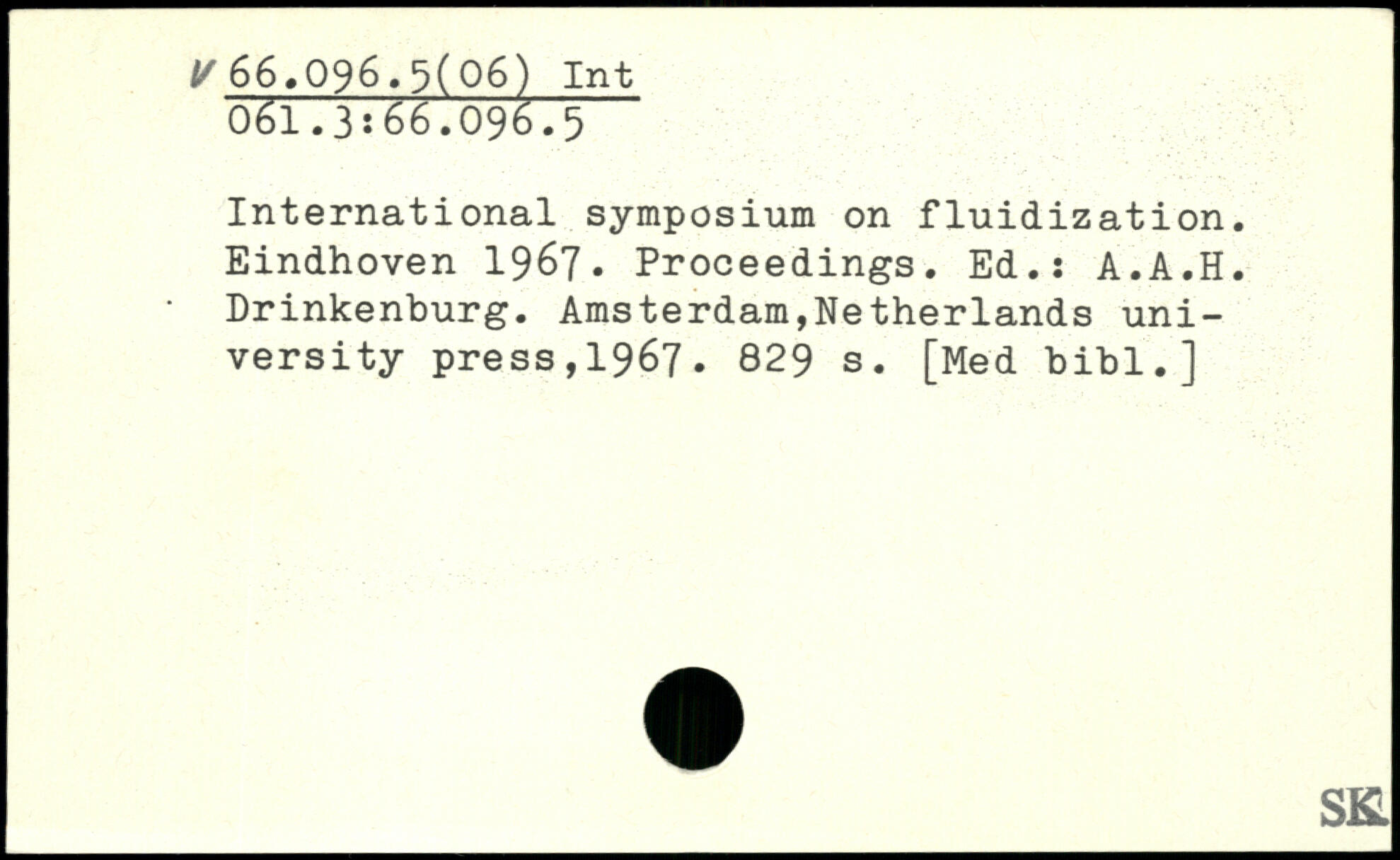 International symposium on fluidization. Eindhoven 1967. Proceedings. Ed.: A.A.H. Drinkenburg.
