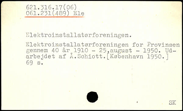 Elektroinstallatørforeningen for Provinsen gennem 40 år?1910 - 25,august - 1950. Udarbejdet af Å.Schiott.