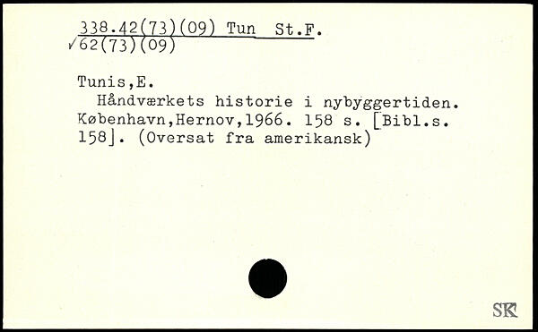 Tunis,E. j Håndværkets historie i nybyggertiden. j