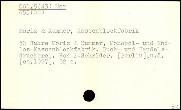 tm?'i!or Moriz à Kummer, Kassenblockfabrik 50 Jahre Moriz & Kummer, Monopol- and End-los-Kassenblockfabrik. Bach- and Handelsdruckerei. Von B.Schröder. [Berlinj,u.å.