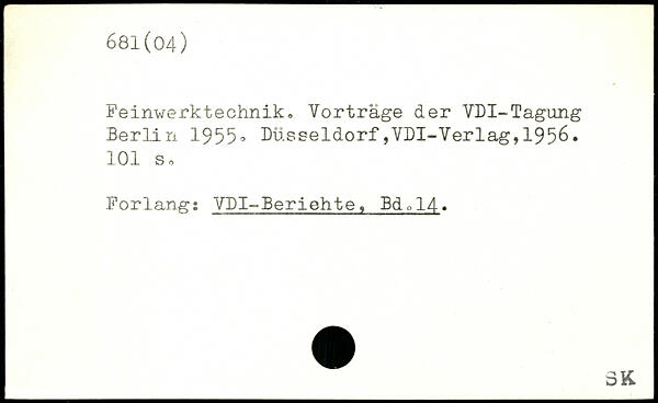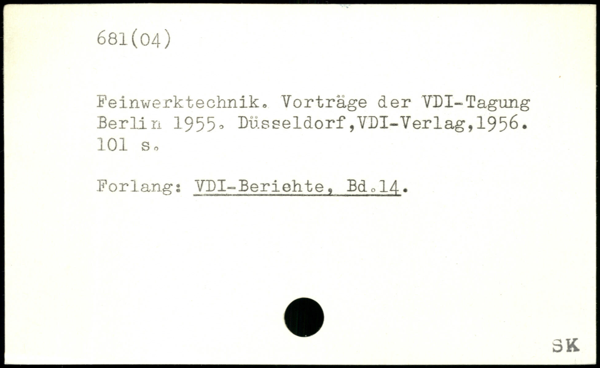 Feinwerktechnik. Vorträge der VDI-Tagung
