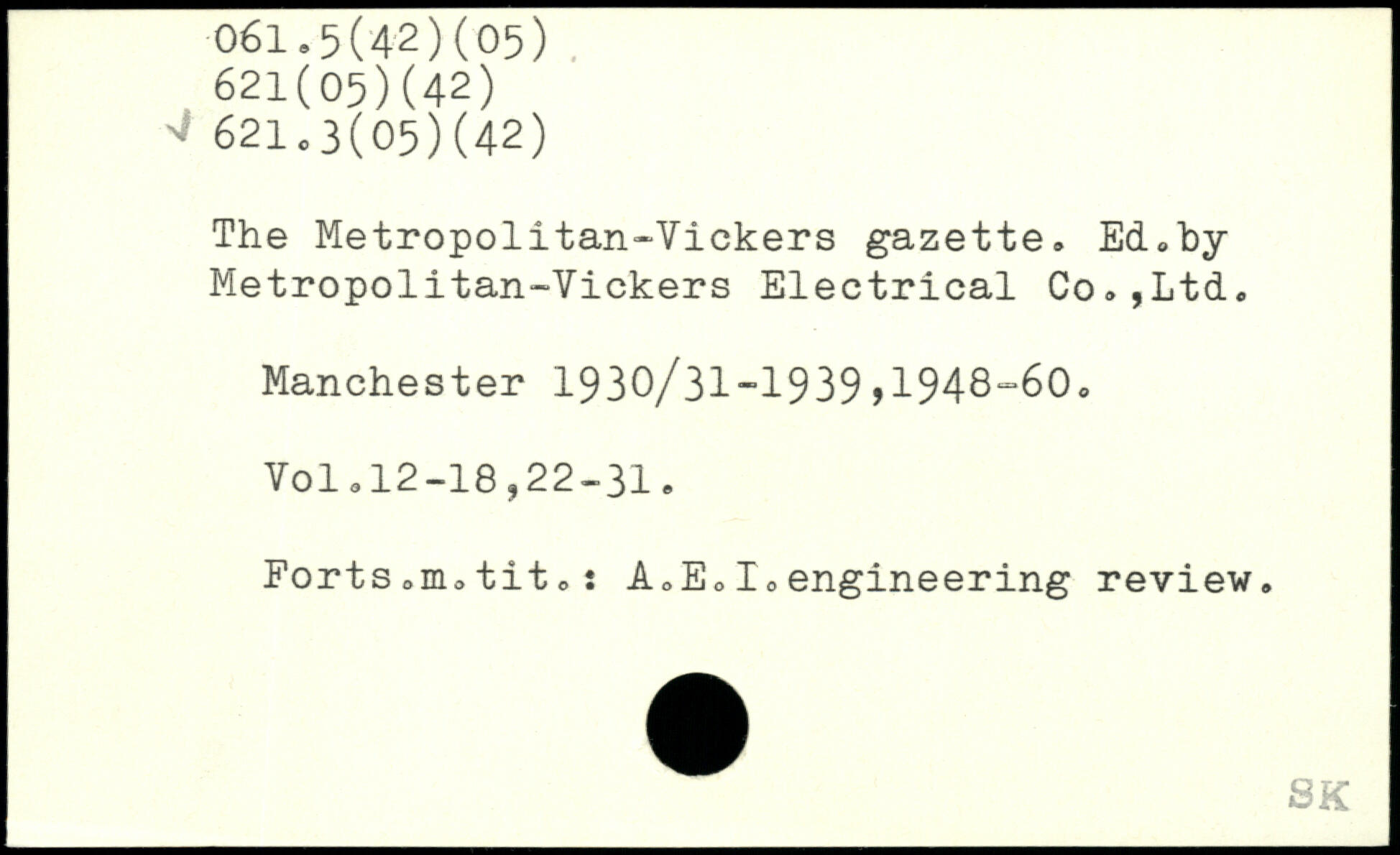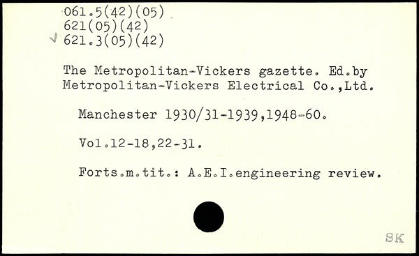 The Metropolitan-Vickers gazette, Ed.by Metropolitan-Vickers Electrical Co,,Ltd