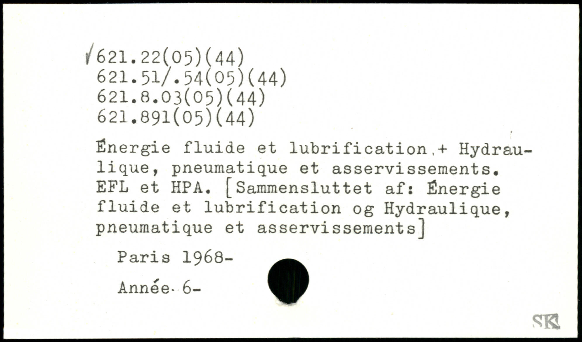 Énergie fluide et lubrification,+ Hydraulique, pneumatique et asservissements. EFL et HPA. [Sammensluttet af: Énergie fluide et lubrification og Hydraulique, pneumatique et asservissements]